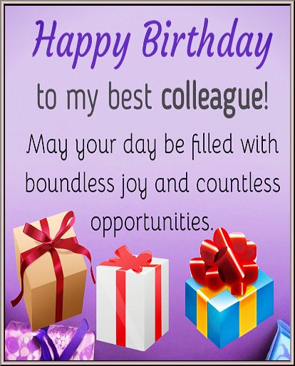 4. Happy Birthday to my best colleague! May your day be filled with boundless joy and countless opportunities.