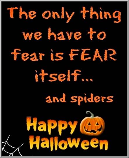 Share this creepy halloween phrases Images with quotes “The only thing we have to fear is fear itself and spiders”. A fearful scary halloween quotes image for download.