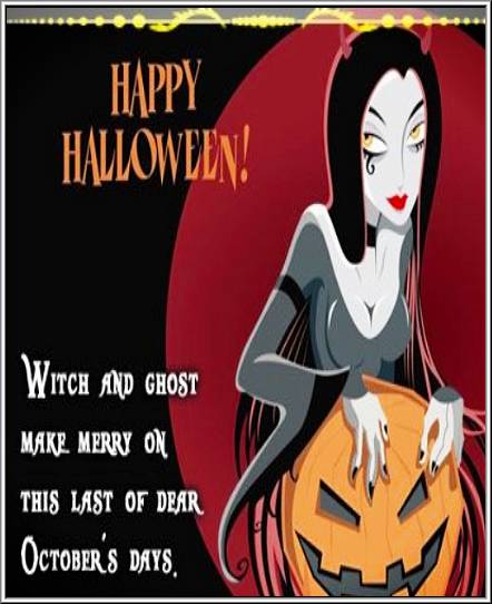 Send this halloween witchy quote saying “witch and ghost make merry on this last of october days”.
