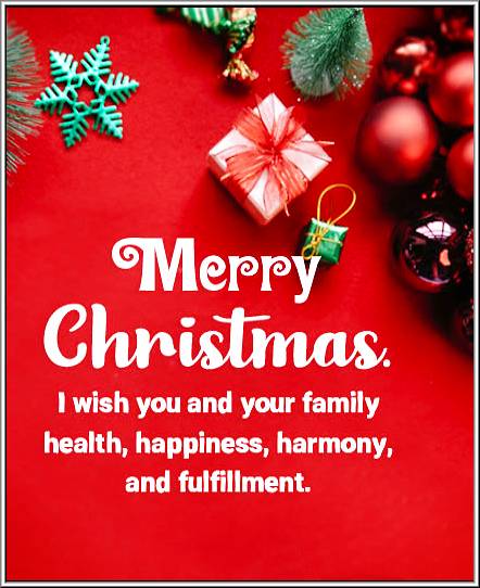 This Christmas, I wish endless happiness, good health, and success for your family. Happy Christmas!