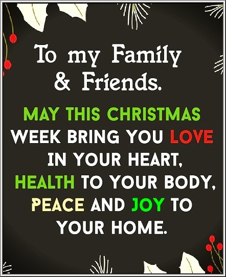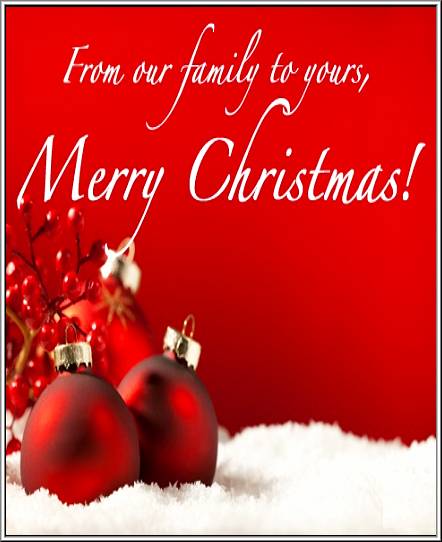 Merry Christmas to you and your family. May your home be filled with love, laughter, and peace.