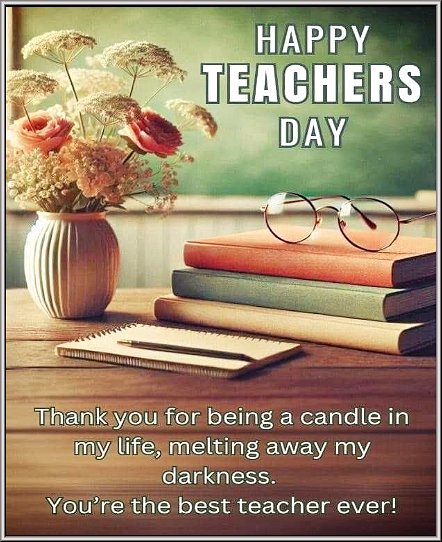 - Thank you for being a candle in my life, melting away my darkness. You’re the best teacher ever! Happy Teachers Day!