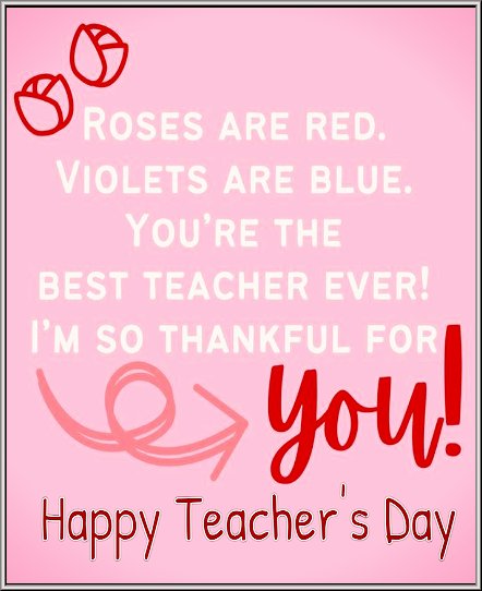 4. Roses are red. Voilets are blue. You’re the best teacher ever! I’m so thankful for you!