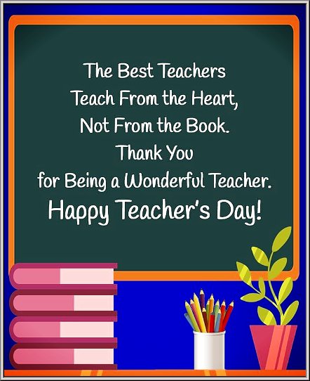 5. The best teachers teach from the heart, Not from the Book. Thank you being a Wonderful Teacher. Happy Teacher’s Day!