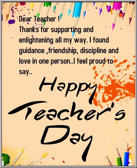 7. Dear Teacher! Thank for supporting and enlightening all my way. I found guidance, friendship, discipline and love in one person..I feel proud to say..Happy Teacher’s Day!