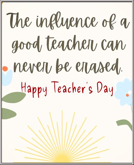 3. The influence of a good teacher can never be erased. Happy Teacher’s Day.
