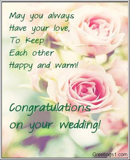 Congratulations on your marriage. Wishing you a lifetime of happiness.